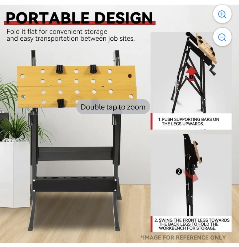 PORTABLE FOLDING ADJUSTABLE WORK BENCH